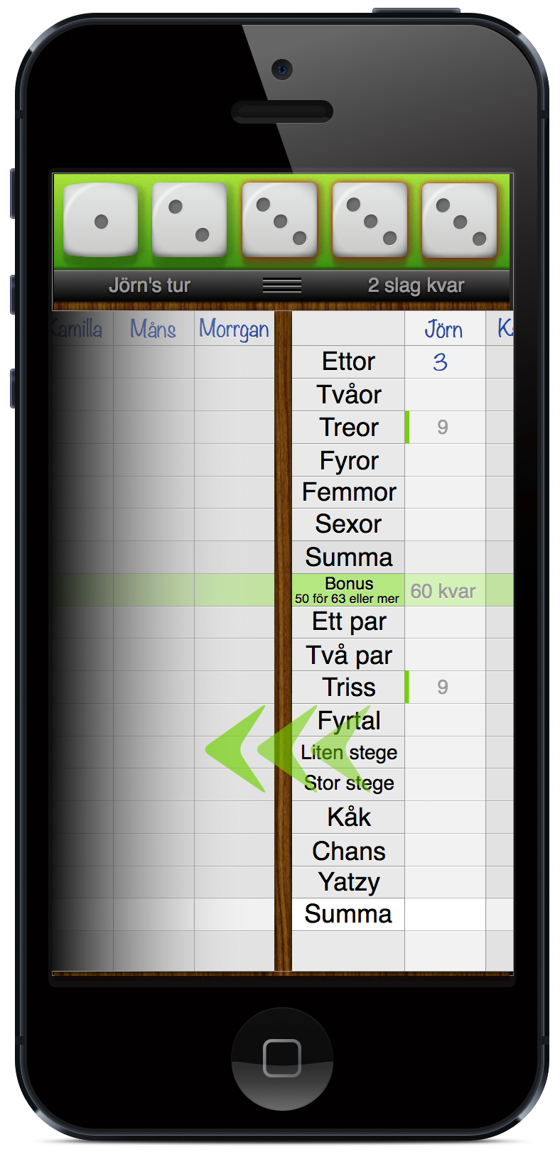 Swipe between ongoing games or if you using it as your pad when playing with real dices just swipe to have a new one.